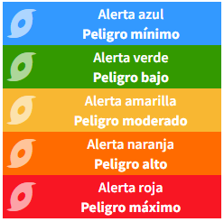 Estar atento a los avisos y alertas de protección civil bajo los siguientes colores:
